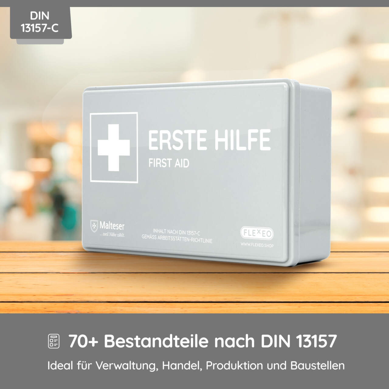 Betriebsverbandkasten Grau, DIN 13157, Komplettpaket Basic Plus