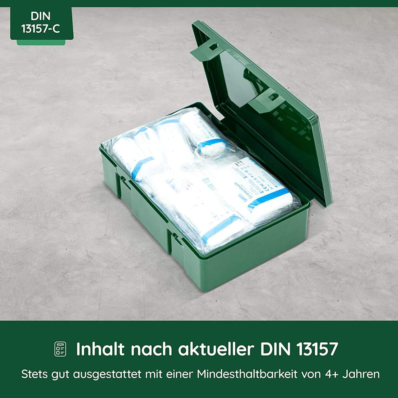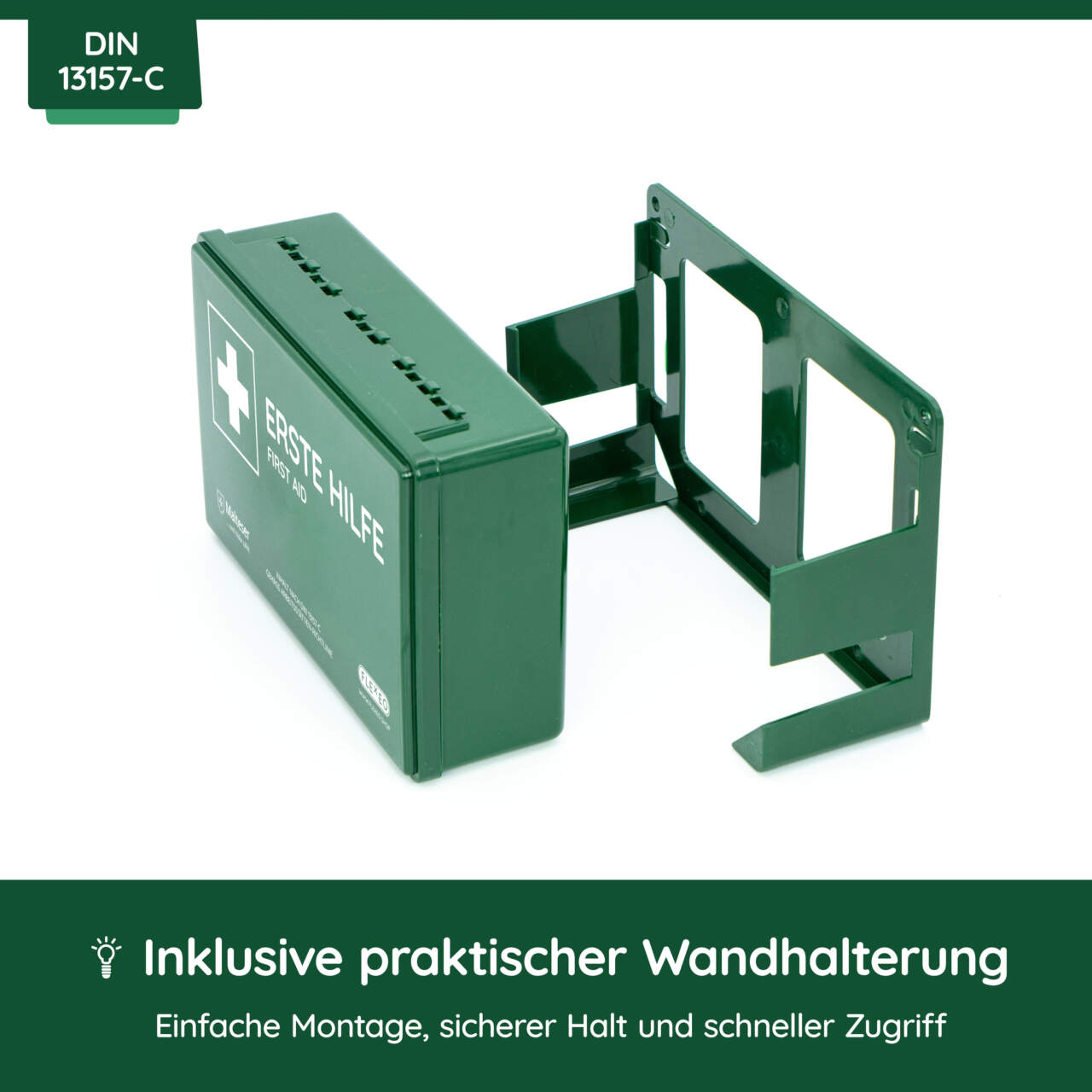 Verbandkasten DIN 13157 für Betriebe, gefüllt und mit Wandhalterung
