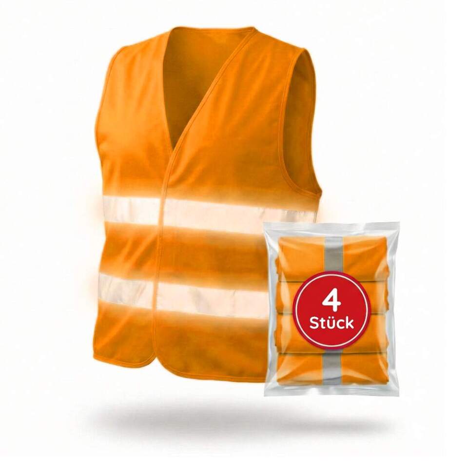 Warnwesten nach DIN EN ISO 20471, orange, 4 Stück